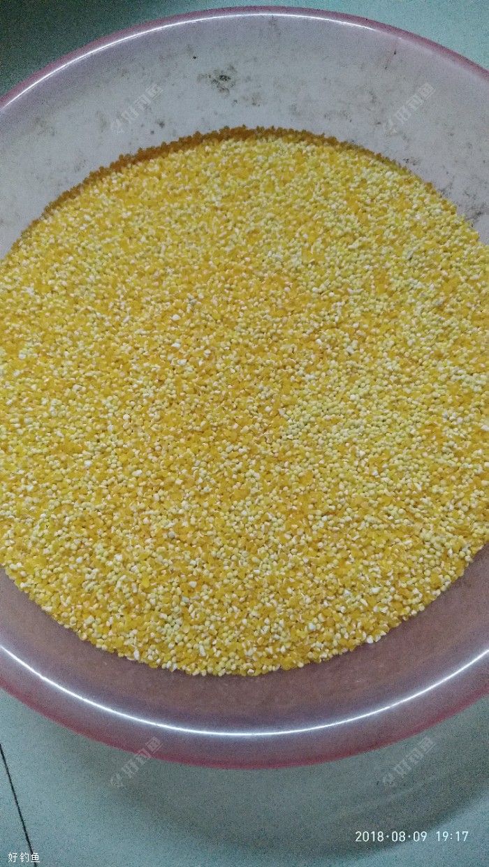 把碎玉米和小米放在一起搅拌混合,我泡的酒米都没炒过,觉得麻烦,我可以泡的时间长一点。急着用,觉得时间长的话,可以炒一下,这样酒米短时间就可以用了。