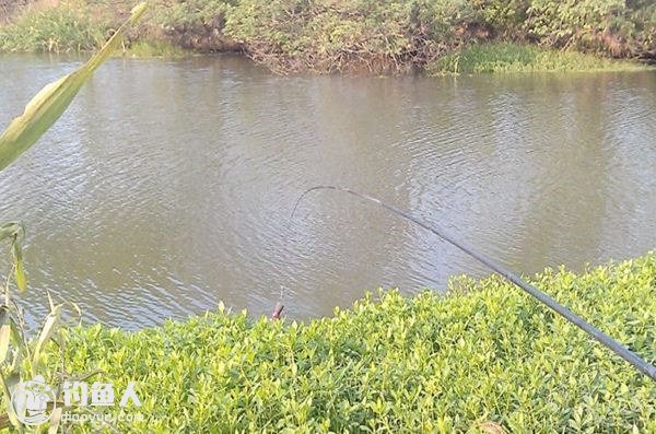 我们可以将竿子的前两节退掉,用较硬的第三节把水面的水草拨开排球大小的草洞,草洞面积的大小要根据具体条件决定: