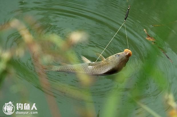 ⑥钓到鱼时候起杆要干净利落,防止鱼挣扎钻入草里脱钩,也防止鱼在水里的挣扎声吓跑其他的鲫鱼。