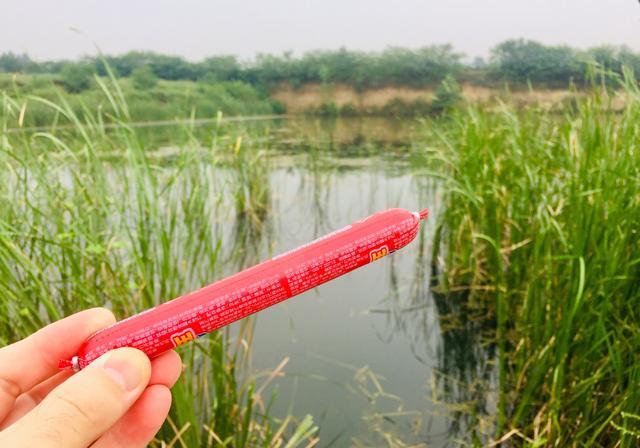 由于此芦苇塘里小麦穗鱼闹钩太凶,以至于我的“老两样”面饵还没沉到水底就被哄抢而光。无奈之下,我用药酒泡的麦粒挂钩作钓,当下小杂鱼就不闹钩了,倒是钓上了几条二三两的鲫鱼,就是鱼儿咬钩和中鱼的频率太低。时值中午,钓友送过来一桶开水泡好的方便面给我,我则把带的香蕉送给他作为答谢。拔下叉在面桶封口处的叉子打开封口准备吃面时我才发现钓友给面里还放了一根切成两半的火腿肠,我不太喜欢吃火腿肠,于是把火腿肠叉出来,觉得扔了挺可惜的,有些对不住钓友的好意,遂突发奇想便把火腿肠用手掐成小块儿挂钩垂钓,不承想意想不到的事情发生了......