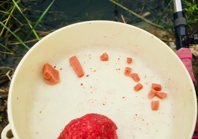 制作火腿肠的主要原料是:畜禽肉、辅以淀粉、植物蛋白粉等,还加入了香精类调味品等添加剂。有肉和粮食作物的香味、还有添加剂的香味,这些原料综合在一起香喷喷的火腿肠不但受到广大人们的欢迎,就连动物也喜欢吃。火腿肠在水中散发着的香味自然也就招诱着嗅觉异常灵敏的水生动物们的青睐,用火腿肠当做钓饵,自然垂钓效果不错。至于小杂鱼不闹钩是因为火腿肠不像面饵入水后开始散化,正是这个散化的饵料特别招诱小鱼蜂拥而至。火腿肠首先入水不散化,其次火腿肠不易被啄食,小鱼的小嘴吞不进嘴里,而当火腿肠钓饵落入水底后,小杂鱼因惧怕水底的鲫鱼、鲤鱼、黑鱼、鲶鱼以及甲鱼等而不敢继续闹钩,所以,这个时候只要浮漂有动作,扬竿十有八九有钓获,而且还都是除小杂鱼之外的好鱼。