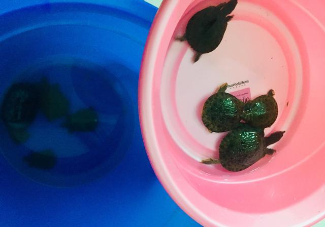 当天,我用火腿肠当钓饵后共计钓获了4只甲鱼、两条鲫鱼和一条黑鱼。好几个不认识的钓友听说我钓到了甲鱼都跑过来观看,他们都说只是听村民说里面有野生甲鱼,但是从来没有钓到过,今天亲眼见证真是有野生甲鱼。