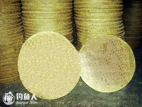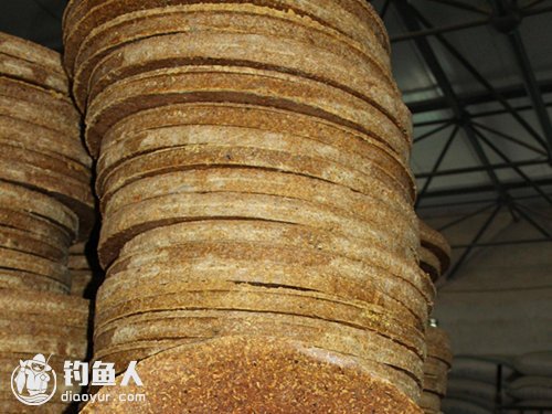 将豆饼粉碎成小颗粒时用火炒香,然后继续粉碎成粉状。然后再将豆饼粉加入面粉中制作出饵料,可以钓多类草食性、杂食性鱼种。
