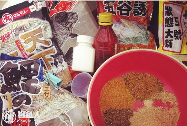 然后我们来说商品饵的配比吧,一般而言,荒食肯定是用来钓鲤鱼的,因为颗粒太大了,快速沉底。根据一般商品饵料的配比,我们先选择一款基础饵,比如南北钓具的纯谷物。然后可以适当配比超诱。前者是生麸子,后者是熟的,差别只是如此。或者说,前者片状大,后者较小。基础饵有了,我们加入鲤鱼饵,其实加纯荒食即可,可是比较贵,为了追求性价比,我们采用加入螺鲤或者五亩地的方式,这两款商品饵料都是鲤鱼饵,区别在于,前者腥味大,后者是淡淡的腥味,但后者这种淡淡的腥味对鲤鱼来说更有效。
