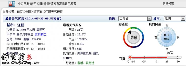 一年四季白天垂钓,唯独夏天钓鱼最难,最近气温比较高,按理说最好“安分守己”宅在室内为好,但每天上得论坛看到众钓友精彩佳作,不仅心痒难耐,昨天早上出钓,鱼儿吃口一般,今日再战,还是老时间,三点多起床、四点多出门,七点不到返回,照例上张天气乱报图,一直习惯了看中央气象台的天气预报,主要是看气压,因为气压对于垂钓而言还是很重要的,最近几天气压都比较平稳,都在1008百帕,出钓中规中矩的,别指望暴护,但也不至于空军。