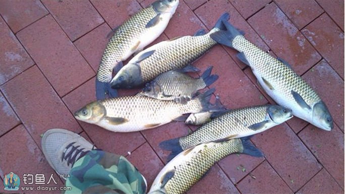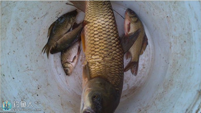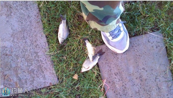 这是我的渔获,4条鲫鱼,2条草鱼,其中一条上鱼后直接送给了老林。