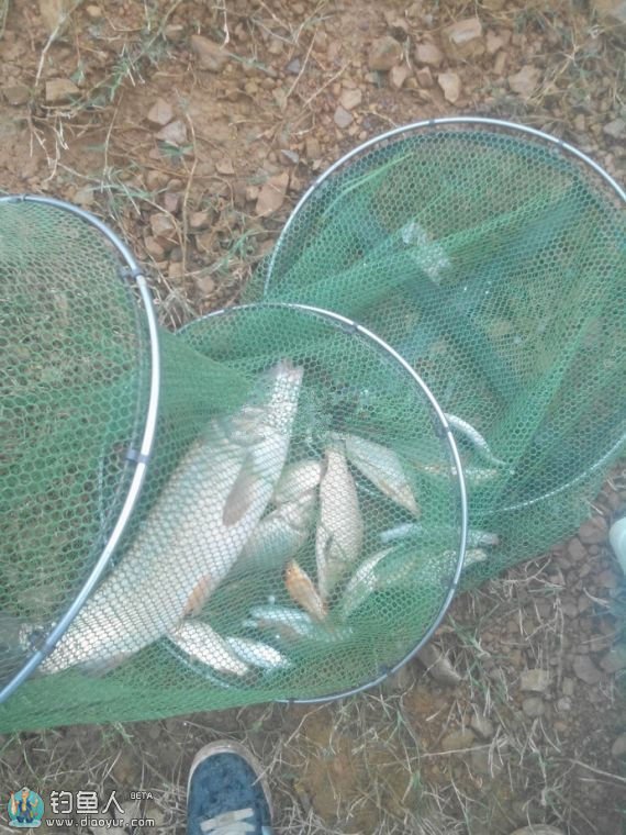 在这个水域一起钓鱼的,还有4人,我中午转了一圈看了看,都是钓深水,3-4米,而且都是背风,只可惜都是空军,下午都收杆走了。但是我运气好像不错,下午中了大草一尾,途中2尾没上半斤的小草鱼都放生了: