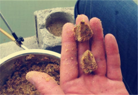 玉米面500克,麝香水小药20克,臭豆腐20克,白酒200克,黄豆粉100克,面粉100克。将其置入容器中搅拌均匀。装入,不透气的袋子中,密封起来,放到阳光下暴晒一周左右,饵料中发出那种酸酸的味道的时候,就可以拿来垂钓了,这种饵料,有一点甜味,还有一点酸臭味,使用这种发酵型饵料的话,如果你是个文明人,那你记得带个口罩,因为味道有点让人难以接受,很刺鼻,但是为了能钓到大鱼,哎,也在所不惜了。