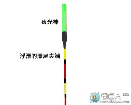 2.钓组。手竿钓鱼用台钓法钓组较好。可用夜光棒套于漂尾尖端;如果有风,可将夜光棒插在浮漂的3目或者更低。夜光棒能小就小,以提高浮漂的灵敏度。