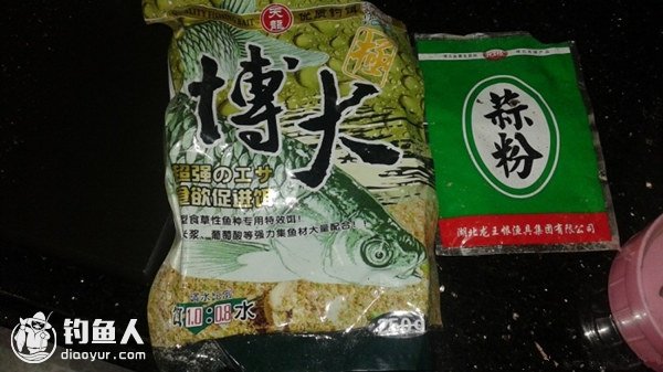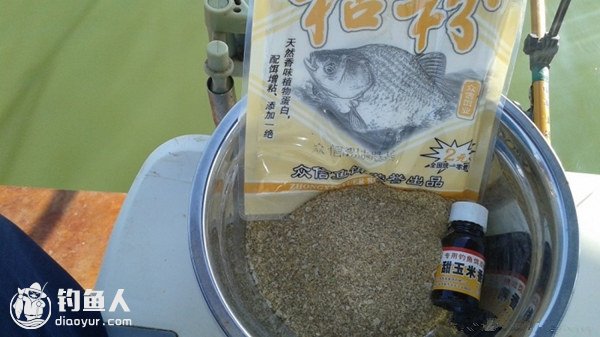 在使用的时候,加一点粘粉,粘粉的量,根据个人使用的情况来定,喜欢粘度高一点的就加多一点,喜欢粘度低一点的就加少一点。钓草鱼我喜欢加一点玉米香精,但是量不要多,不是什么草鱼都喜欢玉米香精的。