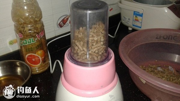 打碎的颗粒饲料装在盆子里面,(要做多少,可根据自己的情况来定)