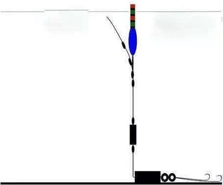 如果换上大的浮漂,走漂情况还是没有改善,那就换一种调漂方法,学习传统钓中的铅坠躺底的调漂方法。铅坠躺底的好处就是铅坠、子线、饵料都在水底,可以起到锚的作用,这样就可以防止走漂情况的发生,其实走漂产生的原因在于线组对于水底的附着力太小。