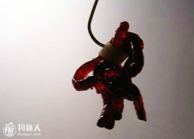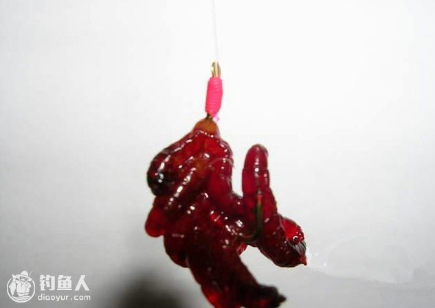 钩是改造过的便于手捏,很简单缠点红线就行了。最后的一条红虫怎么挂你看好了,这是个小窍门。