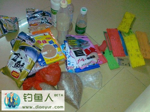 过程:头天晚上接到约定,直接就去渔具店买了料和钩,四袋鲮鱼料(腥味,麸香,奶香,综合的味道)自己回家绑了四副子线。