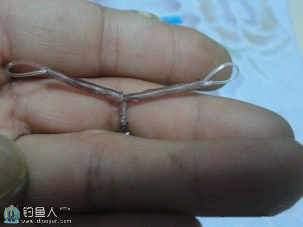 再用手捏住绑好的8字环一端,把大线的另两端馈成如图中的形状(每侧的长度约4cm)