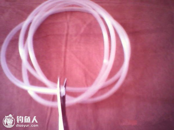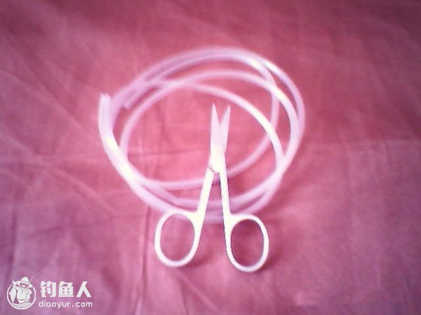 套管(我是用医院吊瓶用的输入管)。用剪刀剪取大约2MM左右的长度,将其套在浮漂的漂尾身上,不管有多厚的萍只要钩先下去漂也会很快地跟着下沉。所需材料及做法如下图: