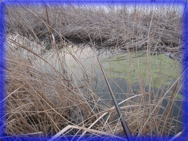 D钓点选在蒲草边,距岸较远但水浅,施钓几次后连条小鱼都不闹,看来鱼儿还不喜欢浅水!