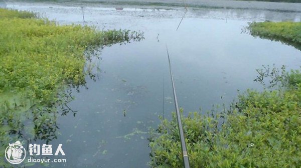 即水面上长满杂草没有缝洞,无法打窝下钩。垂钓前清理出一小块水草,作为投饵下钩的钓点。开完窝后应每天向窝内投放诱饵,并从窝中心撒向四周通道,要求钓点多投通道少撒。经2至3天投饵之后,看到不断有气泡冒出,即可开竿垂钓。