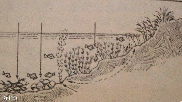 鱼窝;鱼在水中生存,不是随便找个地方就可以的,它们对环境的要求是比较严格的,一般要具备这几个条件;1,温度适宜,2,安全,3,易于捕食。4,溶氧充足(野钓一般不考虑)。具备这样条件的地方就基本上是鱼窝。在自然水域中能满足这这样条件的地方,一定是地形复杂的所在,一定有一些自然物质为它们提供安全保障。鱼是水生动物,它具有一般动物的特性,----为生存而斗争。就是找到食物;保全自己。所以小型鱼类想方设法为自己找到一片有屏障,如水草,树枝,乱石等的地方,而这种地方正是水生物聚居的所在。在这种地方会大胆的吃食。大鱼(食肉)也会到这种地方去寻找小鱼等食物。大型鱼类,则会选择更深一点,更安全的地方,霸占下来作为安家之所。