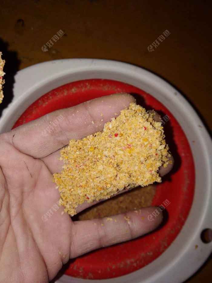 根据我每次钓鱼时的制作和使用,就毫无保留的告诉钓友们。其实说实话,有的人喜欢在用饵或其它窝料使用上保密。我不这样认为,觉得告诉钓友们,他们能钓好鱼,这是皆大欢喜的事。言归正题。我是这样做的。先拿个盆,材料: 以小黄面、谷物饵、麝香酒小米、米粉(增加粘性并透出淡淡的米香味),齐妥了。比例是1:1,麝香小米20%。先把小黄面和谷物饵搅拌匀,再把米粉在搅拌好的散炮上轻洒一层后,继续搅拌均匀就好。如何制作具体看以下: