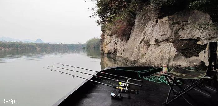 下竿前在鱼钩上串上一小块鱼肉微露钩尖,然后将钓饵泡到诱饵(原制诱饵与江水调和的比例为2:1,同时也可加入少量鱼油)中,取出即可抛竿。