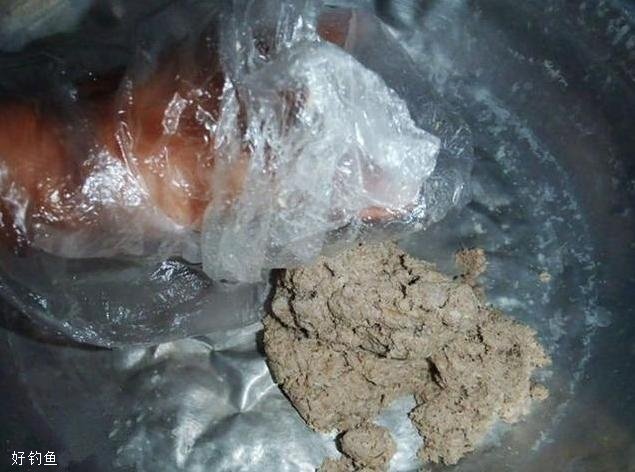 接着大家先将揉好的肉酱给分为两团,一团先用熟料袋给密封起来,放进冰箱里冷冻保存,等到钓鱼的时候再取出来解冻配饵。另一团则是现在就要制作配饵。