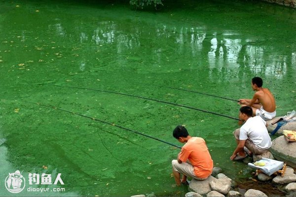 出现“水华”:即呈现出绿色、蓝绿色或黄绿色带状或云状水华。是水质恶化的前兆,浮游植物数量巨大,水色浑浊,溶氧量低。此水在夏季无风雨的时候,就不建议垂钓了。
