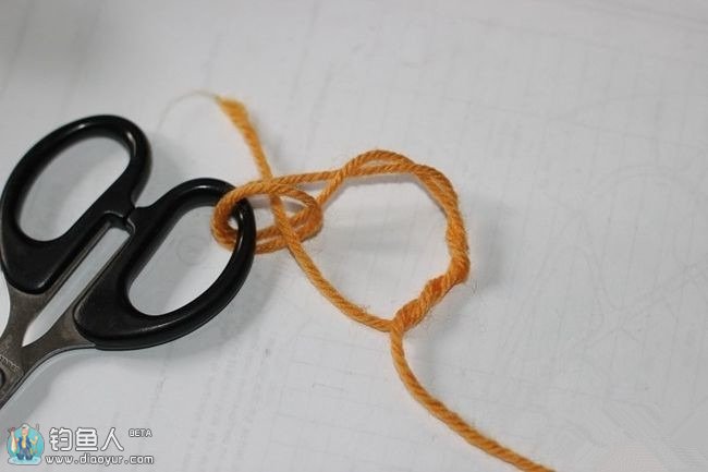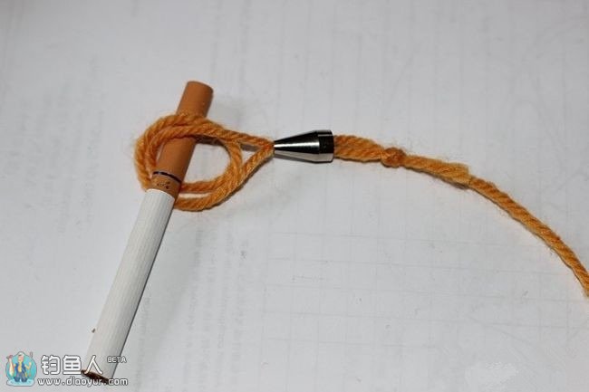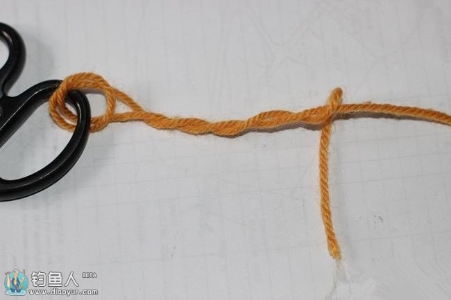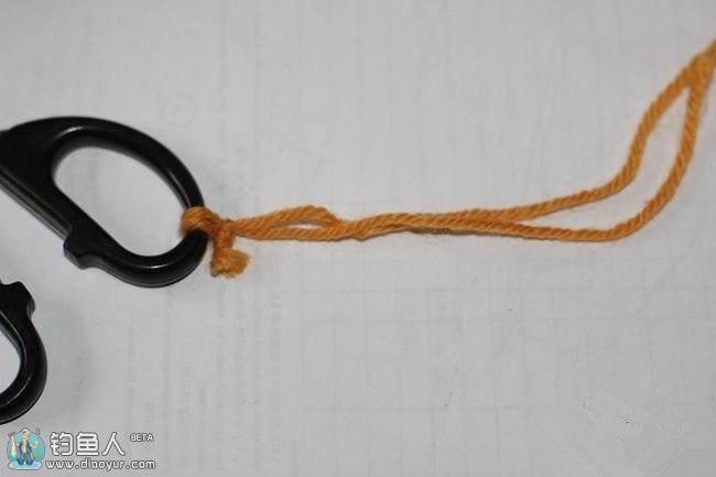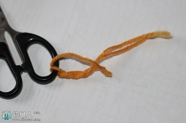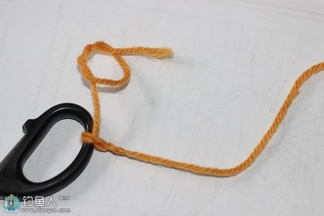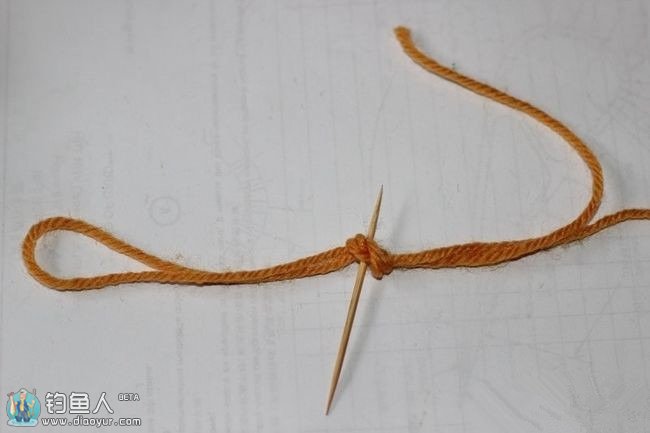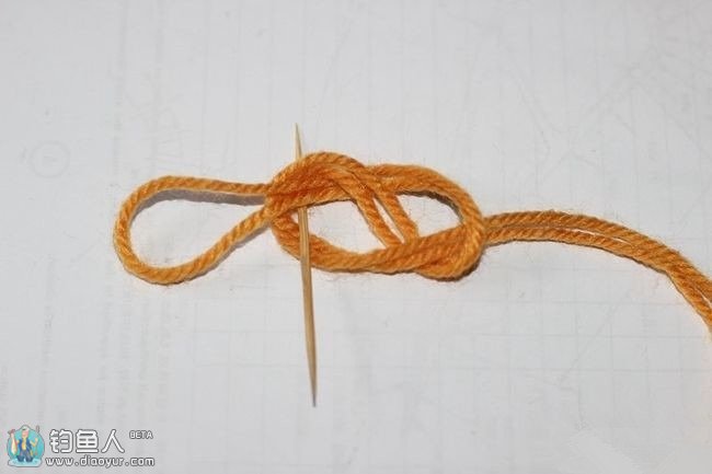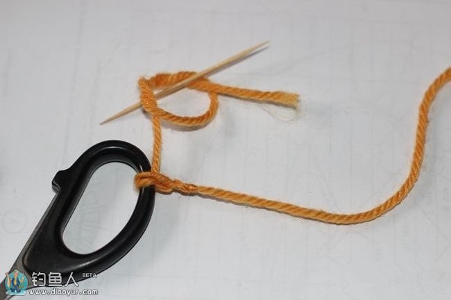 在打结的时候可以用牙签左右移动,控制最后主线头上的圆扣大小,一般圆扣双线对折约3,4公分就可以。