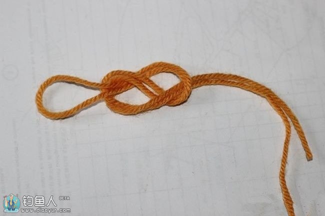 2.八字结:作用是做出双线扣,用八字结的目的是因为八字结对线拉力影响小,而且做出线结后,结上结下的线是成一条直线的。这是一个最实用的结。