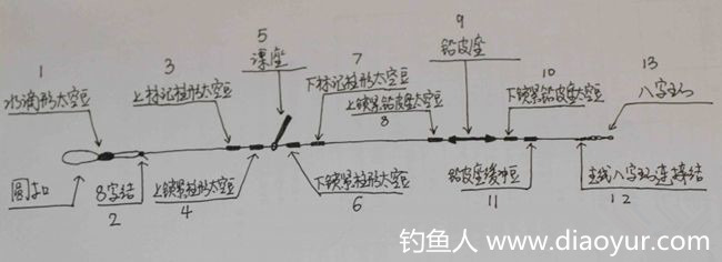 首先,各位钓友先来看看我自己做的一副台钓主线,主要的构成如下图: