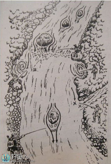 此图对我来说很有吸引力!我在钓鱼时喜欢踩点于图标的洄水处探钓,往往有“惊艳”发生!大多数鱼种同样喜欢停歇在此处,特别是春水略退、水色微浑时。