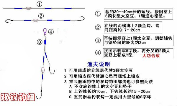 双钩钓组绑法: