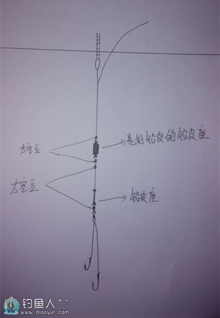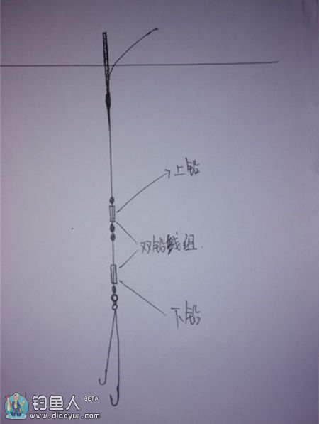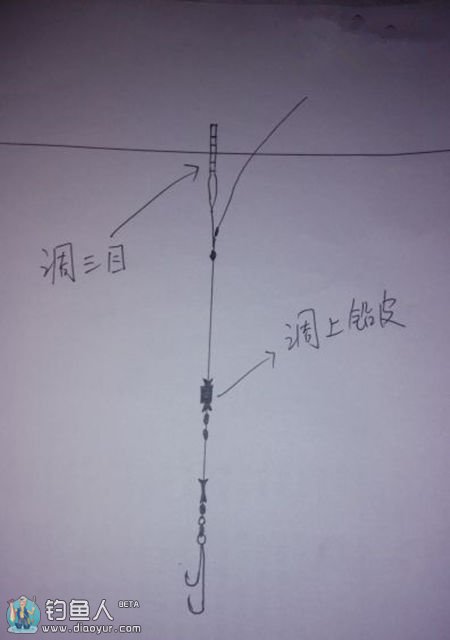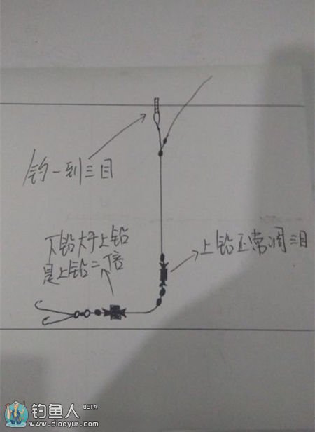 双铅就是一个线组上有两个铅皮座两组铅皮的叫法,那么怎样去调钓呢,有些钓友会认为说双铅也能调灵?对,没错,确实可以调灵,那么我以图文的形式给大家说一下,图1 为双铅的线组