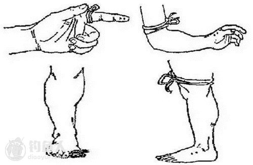 (1)用鞋带等绳状物将咬伤处的上下方(至少上方,即靠近心脏一方)系紧。系的位置根据距被咬的时间来定,处理的时间越晚,系的位置越应靠近心脏。系紧后每 10~15 分钟,应解开绳子 1~2分钟再系上,以避免肢体坏死。