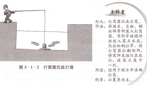 一种是用打窝器将饵料直接送人水底后翻转倒窝。