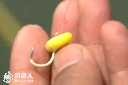 钓饵挂上鱼钩时,要上得稍微大一点,而且上得圆,不让它有过多的虚弱的地方让小鱼更容易啄破。