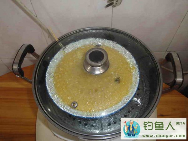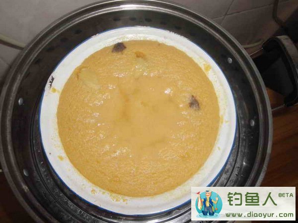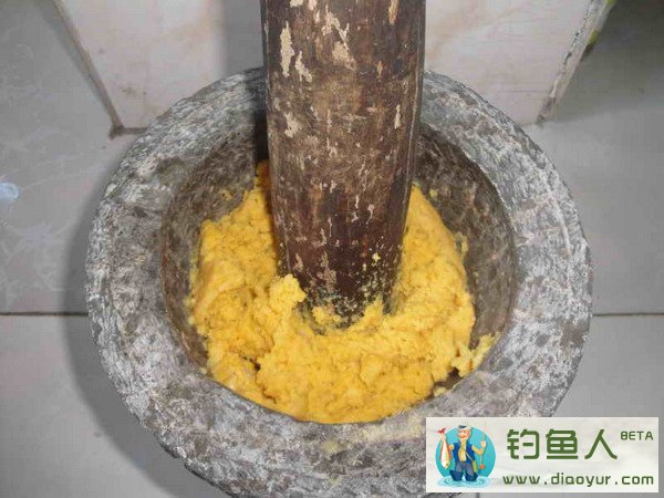 此次垂钓回归原始,自制玉米面饵料,玉米粉加少许水,放入一粒八角,少许红糖,一颗蒜头就可以了。上锅蒸上二十分钟左右。蒸好了要舂一下,捏成团,挂钩垂钓,此饵料钓大个体的鱼,基本没有雾化效果,野钓也没那么讲究。小时候钓鱼,用的就是这么简单的饵料,要么就是蚯蚓万能饵了,什么鲫鱼,草鱼,鲤鱼,塘角鱼满满的一盆。两种饵料,上钩挂金黄的,下钩挂黑不溜秋的。