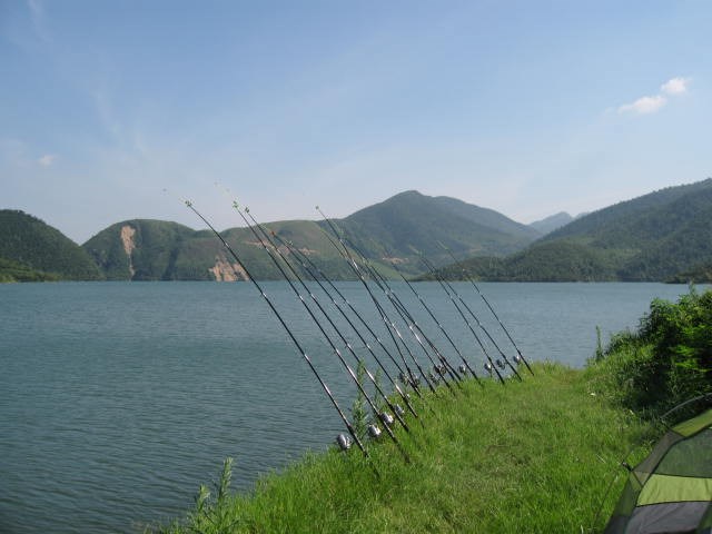 五、短风线钓:当你在风天野钓时,钓位在背风的土台或石台旁边,浪涌影响不大,却因风线牵动浮标而影响钓鱼,你可采用短线钓法,就是在钓组基本不变 的前提下,将一部分钓线缠绕在钓竿梢部,并做个活动线结,这种短风线钓法,虽然在收线和换饵时给钓者带来不便,但就抗风效果上看,还是可取的。