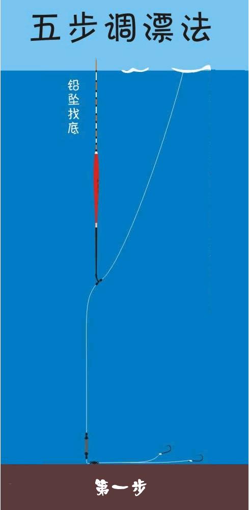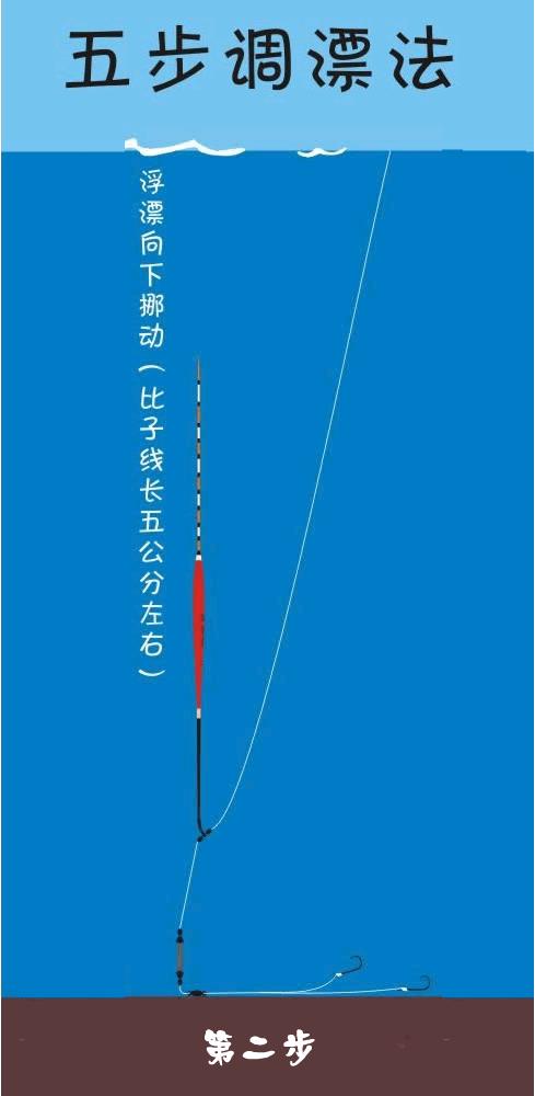 第二步浮漂向下移直到整个浮漂沉入水底。