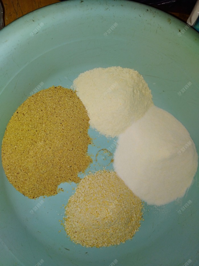 3. 轻麸(状态饵):其成份就麦麸加工后是呈白色的。减整个饵的比重。本身也没重量。特别遇口轻口滑之鱼或深秋冬季初春,一定要用到。雪花粉也行,但价贵不如轻麸来的实惠。