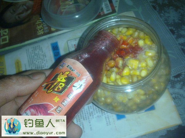 我用的是老玉米 放锅里加水烧开,开后再小火焖半小时,等玉米用指甲一掐便烂就OK。滤干水后装瓶里,加入味精或蜂蜜。再加入商品小药牛B鲤,当然其它的一些钓鲤鱼的钓鱼小药也可以。最后加入曲酒泡制一周即可使用。