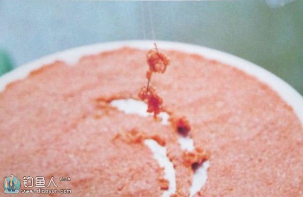 拉饵动作比较简单,只要记好右手抓住铅皮座,左手拿住饵球,将饵球压在钩子上,拉动钩子,钩上有饵就行了,不必可以追求钩上饵的大小、形状。
