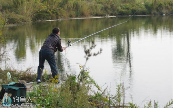 满抛:出于技战术的需要,把钓饵尽可能地抛向最远处。抛 竿时手臂完全伸出,在确保身体重心能平衡的前提下向前探身,这样可以抛的更选。