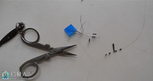 重坠找底之后,取掉增加的铅皮,挂上子线,短则10—15厘米,长的可达20—30厘米。我们以15厘米为例。